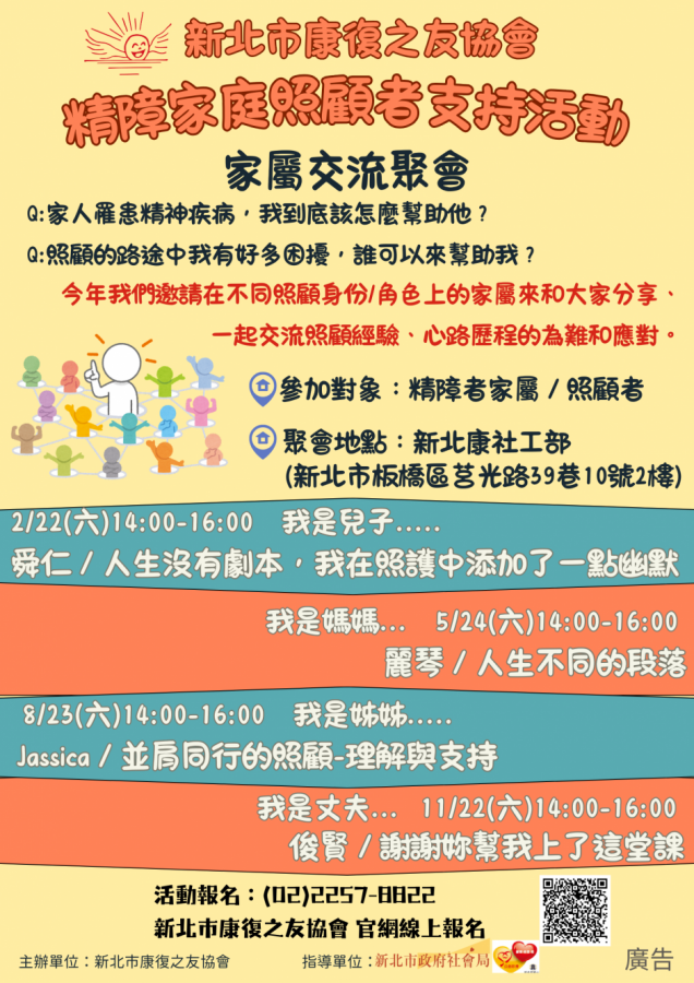 聚會地點:新北康社工部(新北市板橋區莒光路39巷10號2樓)