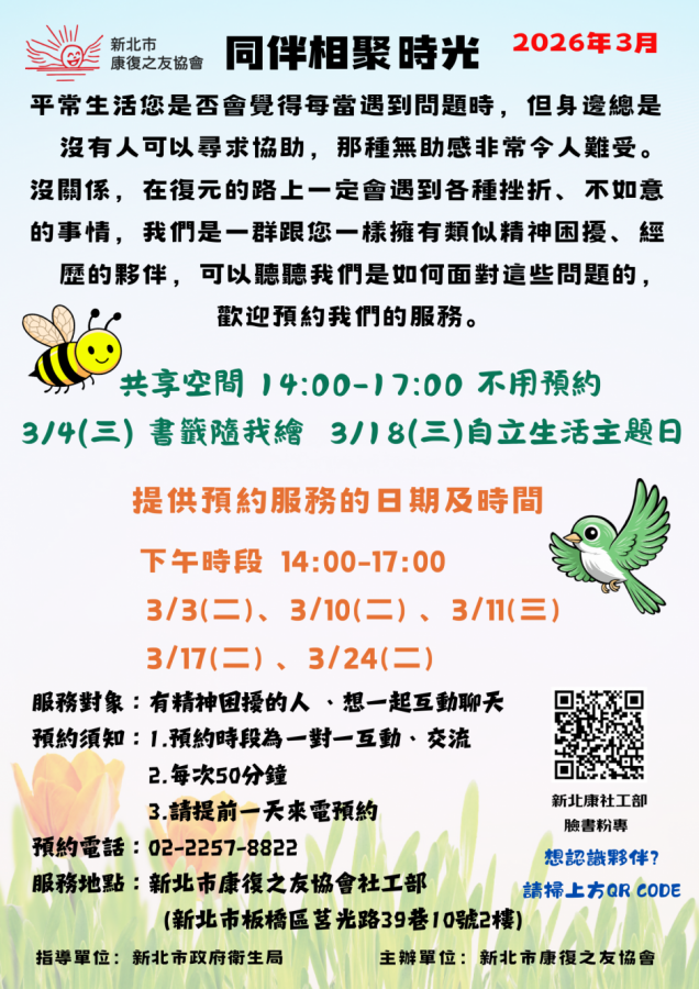 歡迎大家來預約同伴相聚時光!!一起互動、聊天~✨